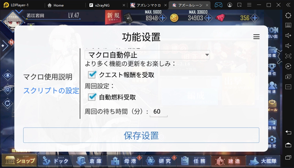 アズールレーン専用マクロです、両手を解放し、自動戦闘、報酬を受取などできます。