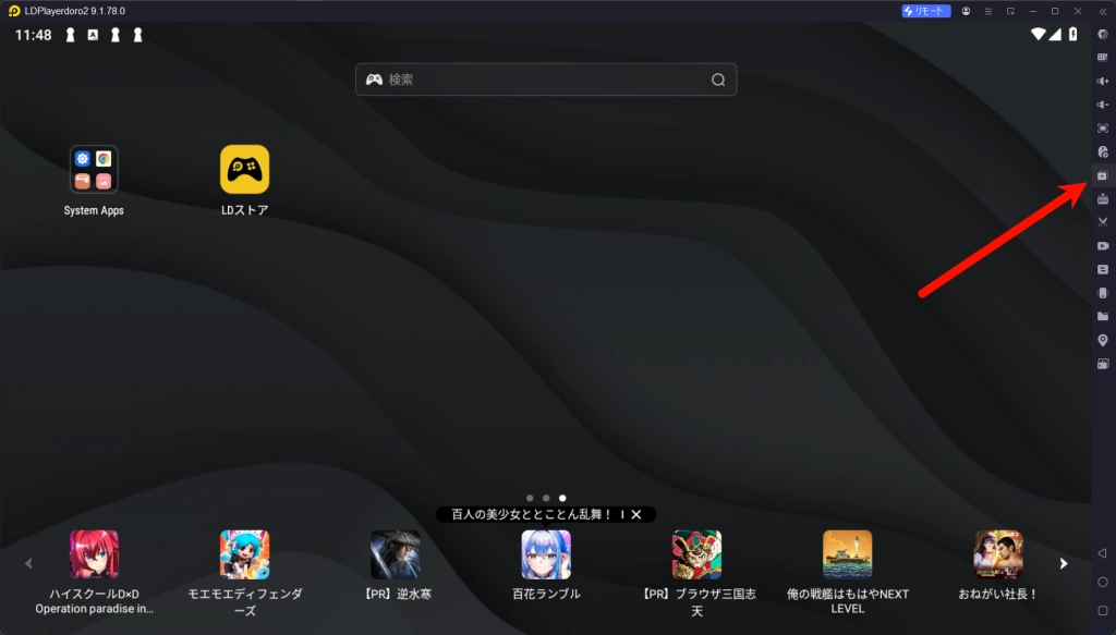 まず、LDPlayer のウィンドウサイズをお好みの大きさに調整します。