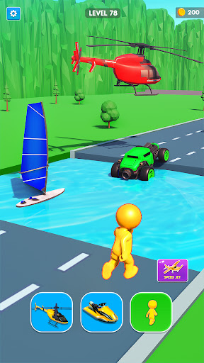 シェイプチェンジャーは、あなたの素早い意思決定スキルをチェックするアクションシェイプシフトランです。そして、シェイプトランスフォームレースが好きなら、シェイプエボリューションは素晴らしいゲームです!何時間ものシフトゲームを楽しむ準備をしてください。シェイプシフトゲームでは、キャラクターの形状を変更して別の乗り物にする必要があります。さまざまなコースや環境を通過するときに、車、ヘリコプター、またはボートにすばやく切り替えます。遅すぎる場合は、最初からやり直します。モバイル画面をタップするだけで、Shape Evolution をプレイできます。陸、空、海を通るトラックで、さまざまな車両間を移動します。急速に変化するこのカーゲームに適応し、挑戦を打ち負かし、他の人に勝ちます。変身ゲームをマスターできますか?